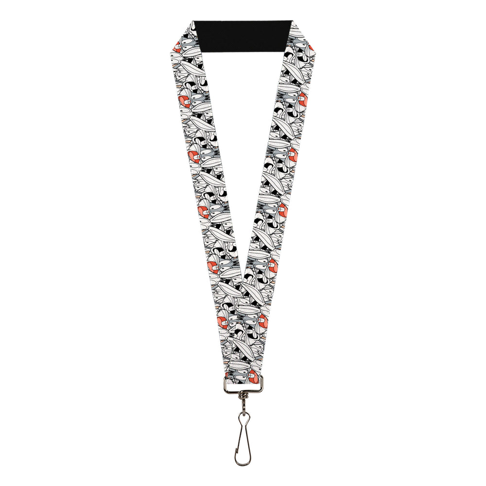 Lanyard - 1.0" - Bugs Bunny Expressions Stacked White Black Gray