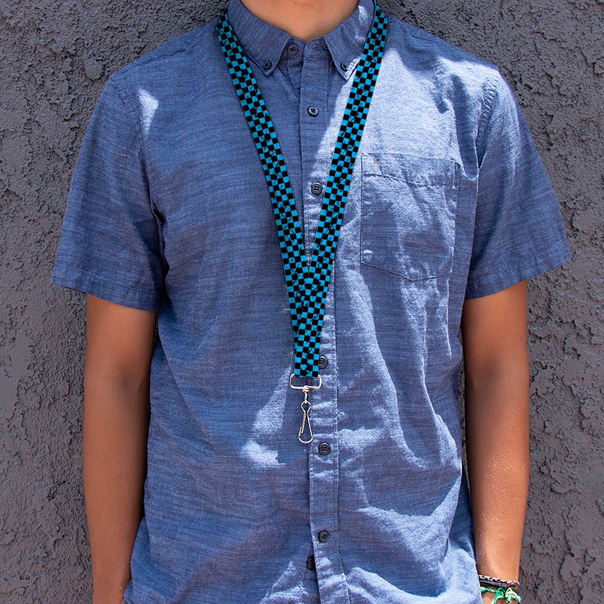 Lanyard - 1.0" - Checker Weathered Black Turquoise