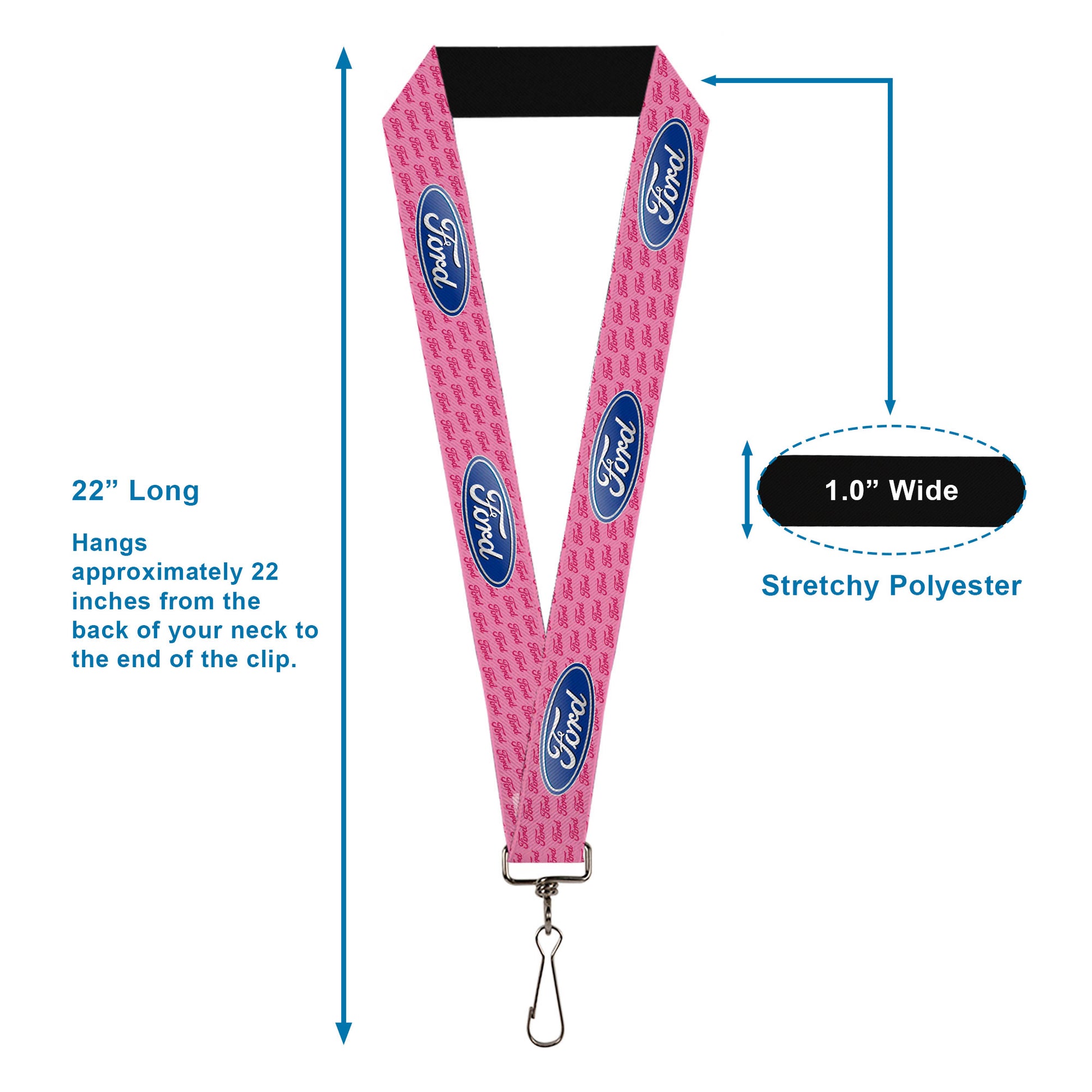 Lanyard - 1.0" - Ford Oval w Text PINK REPEAT