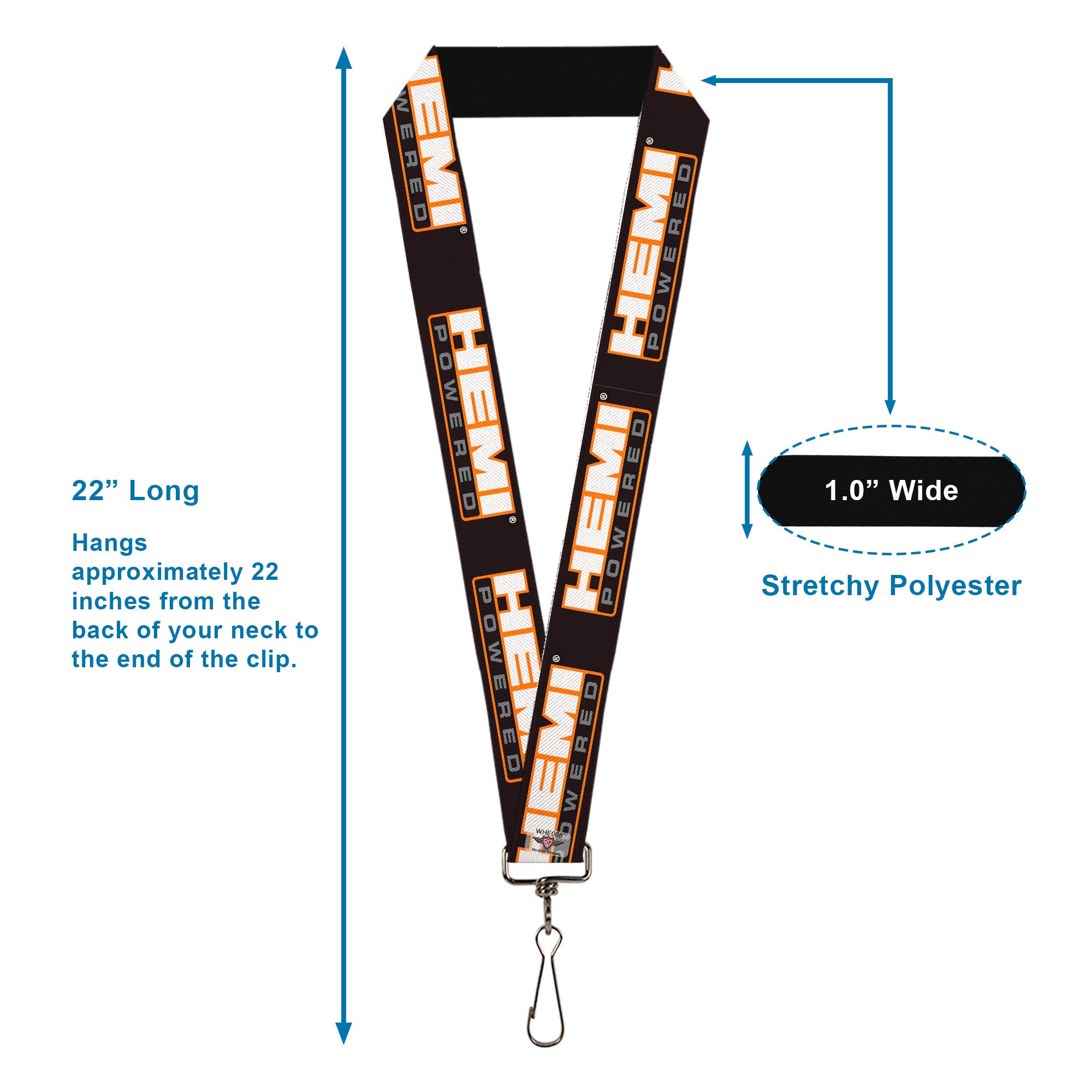 This lanyard is made out of stretchy polyester, and has a steel clip to easily detach your keys. Show off your favorite character or brand with our awesome lanyard! The lanyard is 1.0 Inch wide, and a standard length. This product is Made in USA by Buckle-Down, Inc. and Officially Licensed by Hemi.