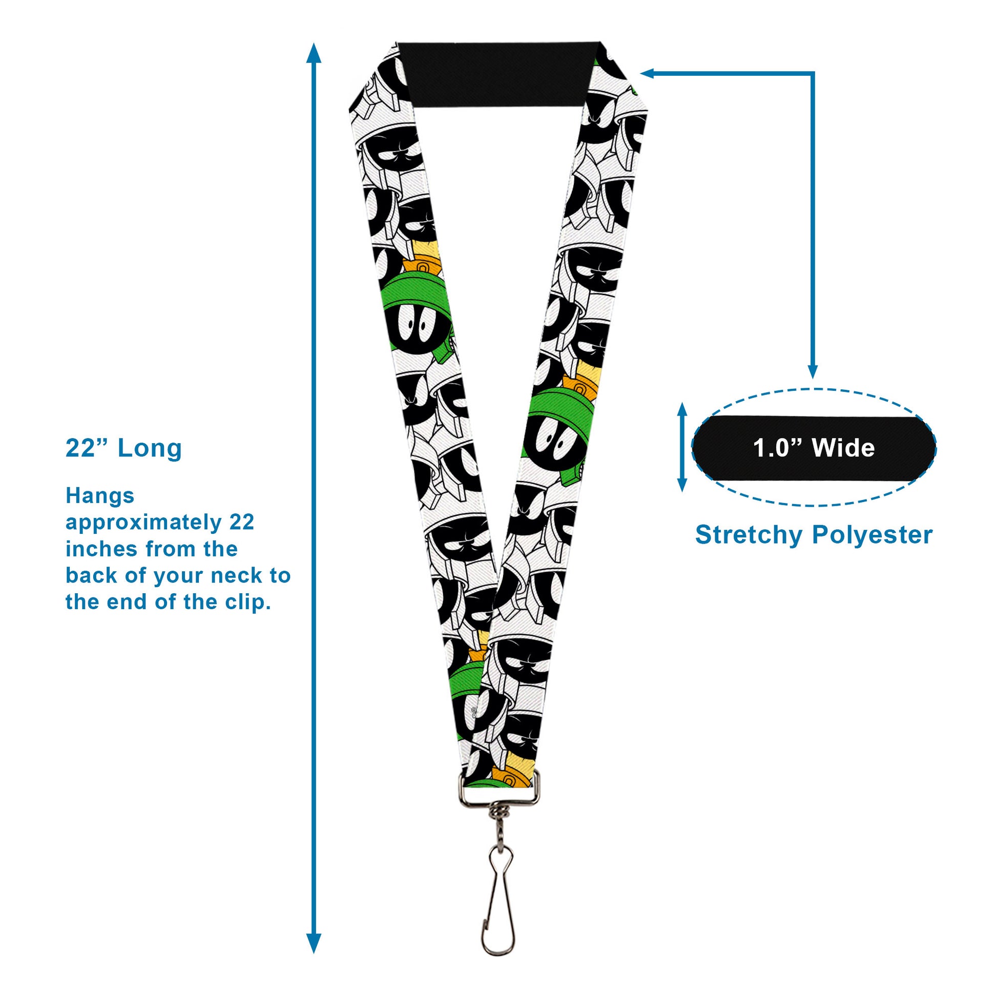 Lanyard - 1.0" - Marvin the Martian Expressions Stacked White Black Green Gold