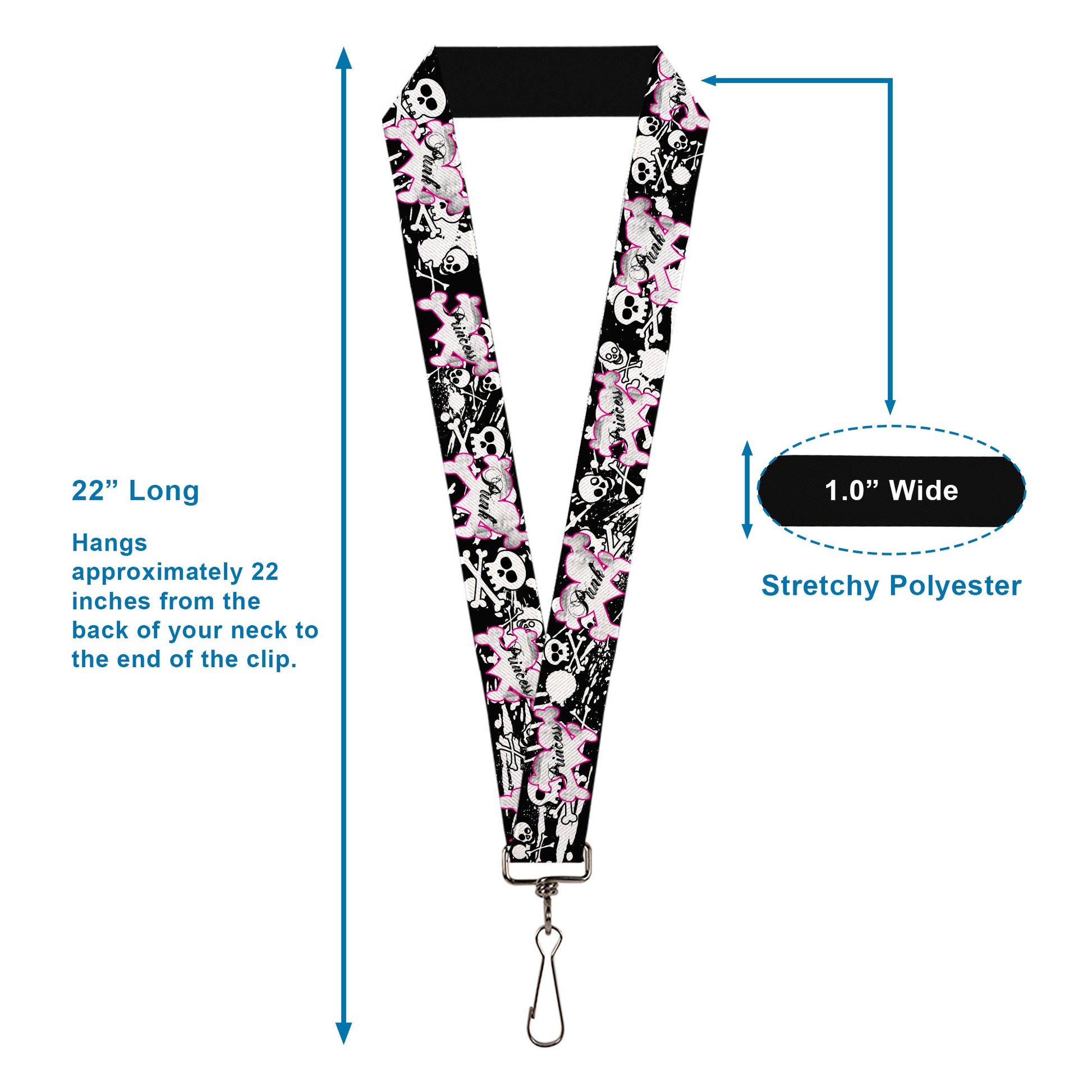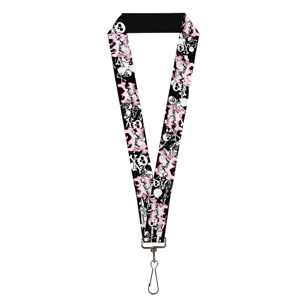 Lanyard - 1.0" - Punk Princess Heart & Cross Bones w Skulls & Splatter Black White