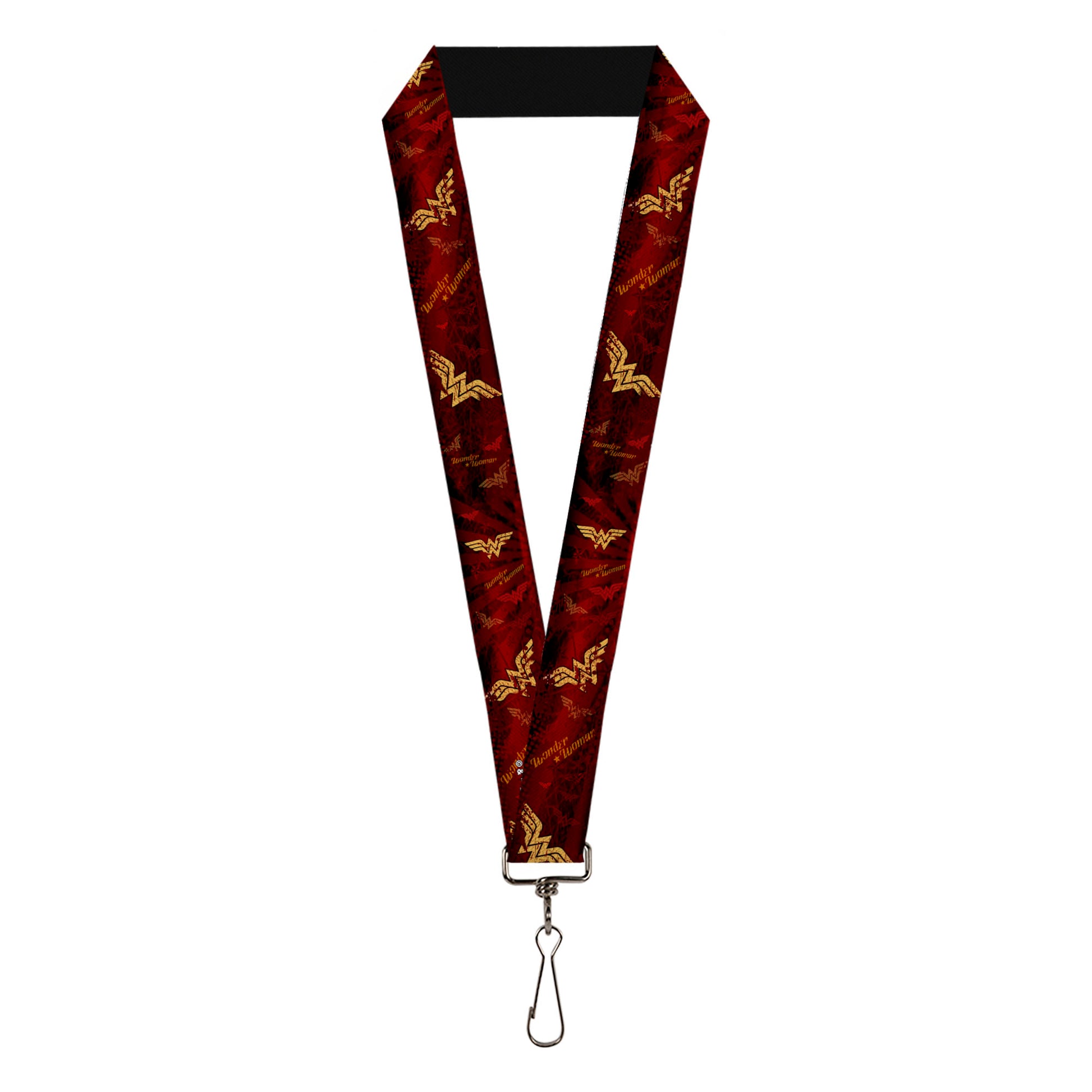 Lanyard - 1.0" - WONDER WOMAN Logo Text Scattered Rays Weathered Burgundy Gold