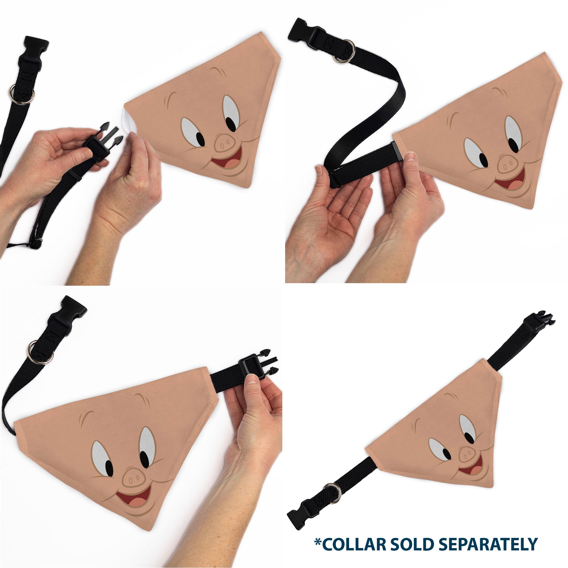 Pet Bandana - LOONEY TUNES Porky Pig Face Close-Up Peach
