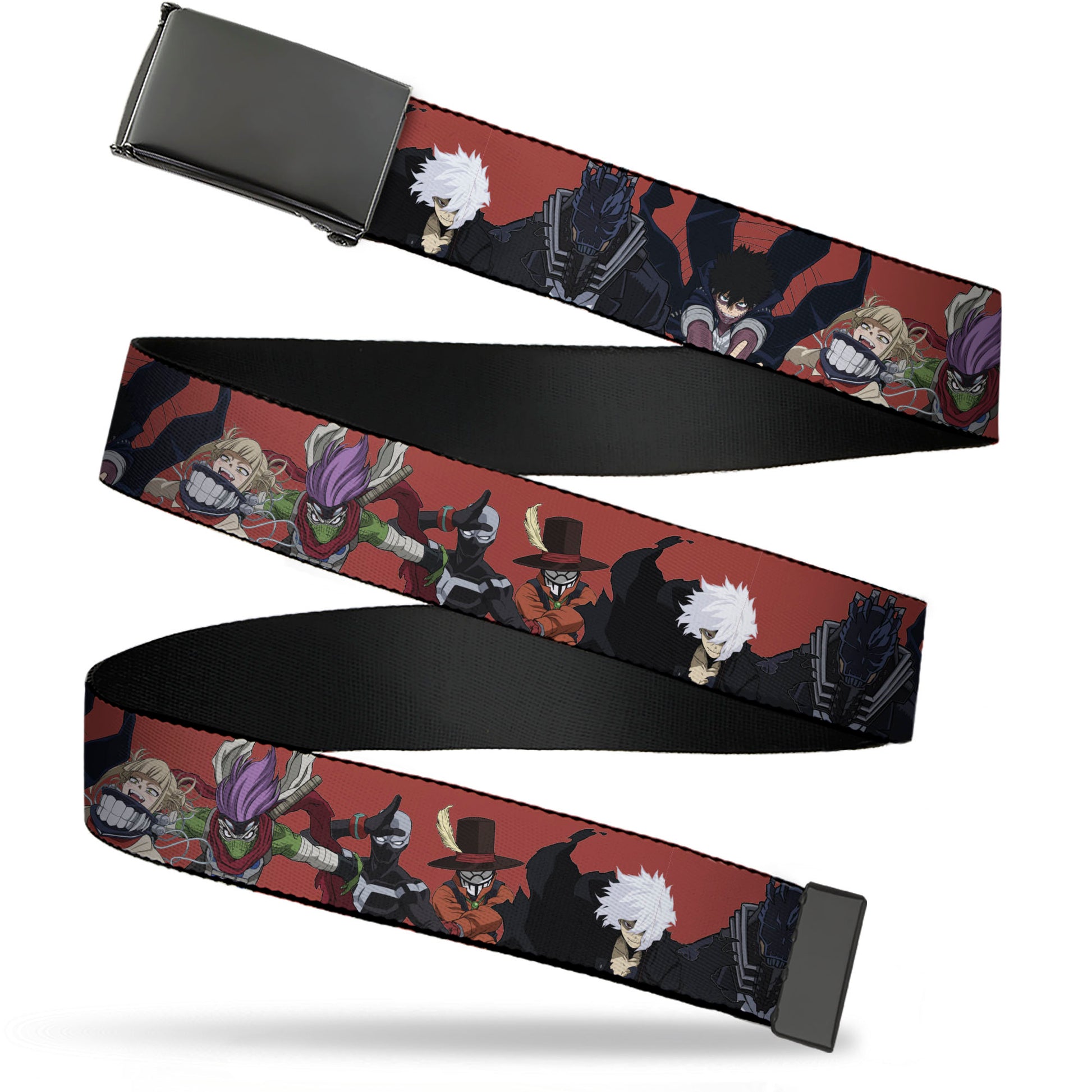 Web Belt Blank Black Buckle - My Hero Academia Villains Group Pose Red Webbing