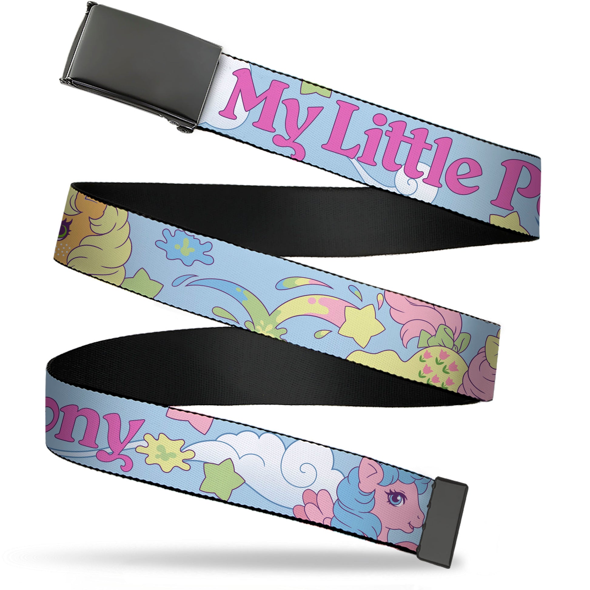 Web Belt Blank Black Buckle - MY LITTLE PONY Firefly Applejack and Posey Group Pose with Title Logo Light Blue Webbing