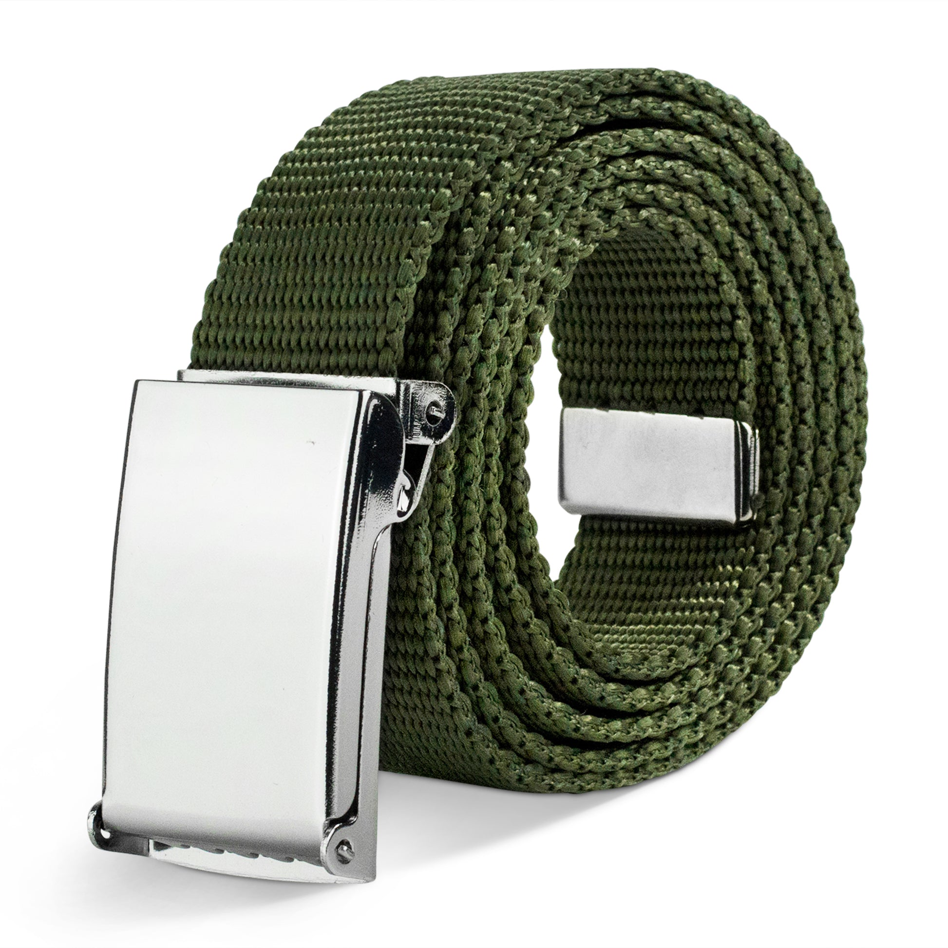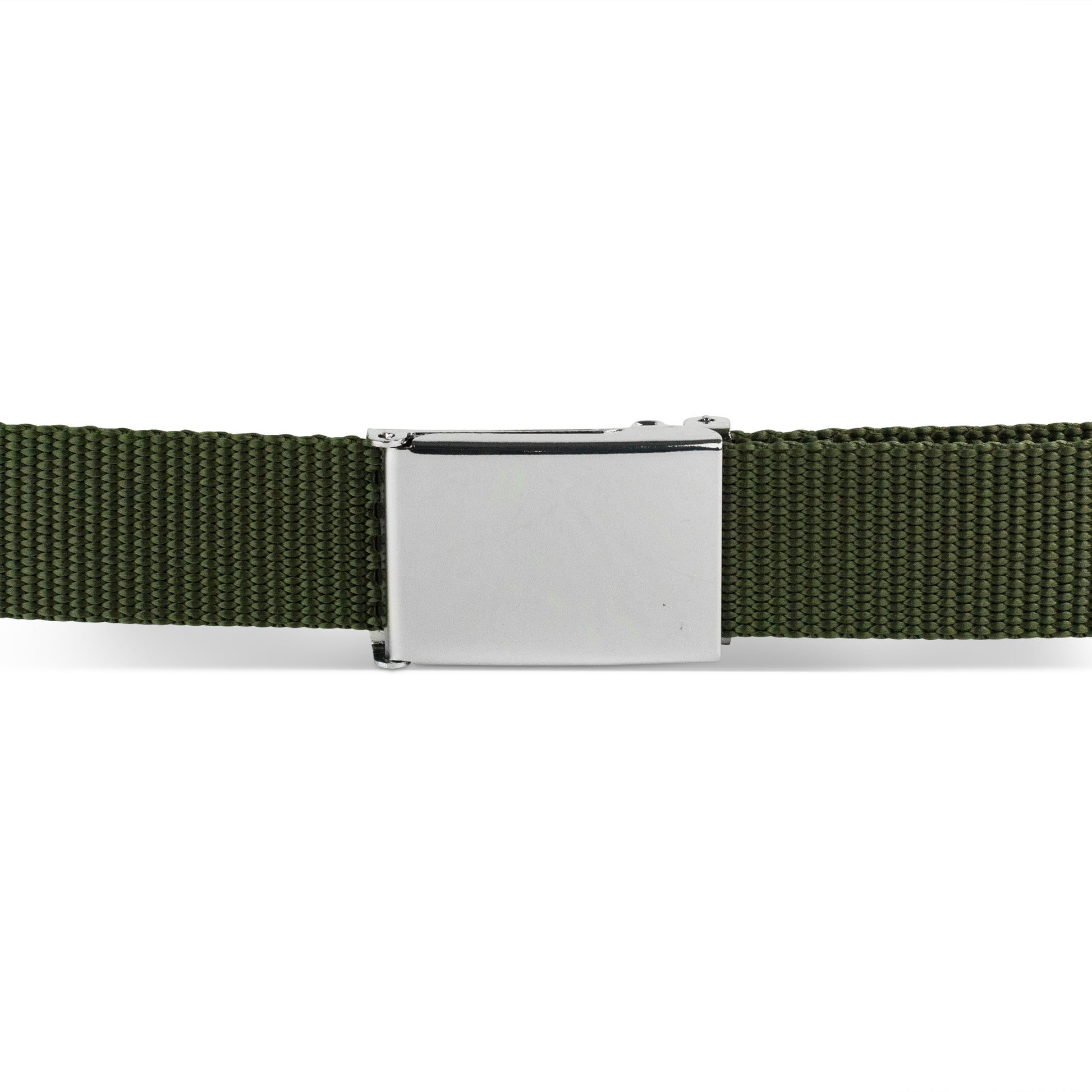 Web Belt Blank Chrome Buckle - Olive Webbing